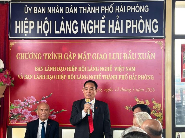Thay mặt Ban Chấp hành Hiệp hội Làng nghề thành phố Hải Phòng, tôi xin gửi tới Quý vị lãnh đạo và Đoàn Đại biểu Hiệp hội Làng nghề Việt Nam lời chào trân trọng và lời chúc sức khỏe nồng nhiệt nhất. Chúc Chương trình gặp mặt giao lưu đầu xuân hôm nay của chúng ta thành công tốt đẹp.